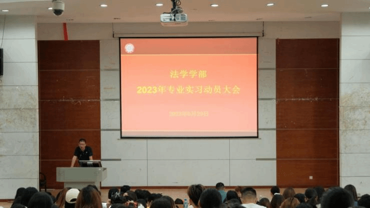 6月29日下午,新葡萄8883官网AMG2023年专业实习动员大会在逸夫楼第二报告厅举行。新葡萄8883官网AMG副部长、法学院党委书记陈双喜,法学院副院长连光阳,法学院党委副书记黎益君,21级年级辅导员江冰洁,本科生教务干事王婷婷、潘丽以及所有暑期参加外出实习的2021级本科生参加大会,会议由黎益君主持。