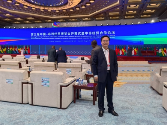 6月29 日上午,第三届中国-非洲经贸博览会在长沙国际会议中心开幕,国家副主席韩正、马拉维总统查克维拉、坦桑尼亚桑给巴尔总统姆维尼、非洲大陆自贸区秘书长梅内,以及来自 68 个国家和地区的 1000 多名各界代表出席,新葡萄8883官网AMG党委副书记、中非经贸合作研究院副院长廖永安教授受邀参加开幕式。