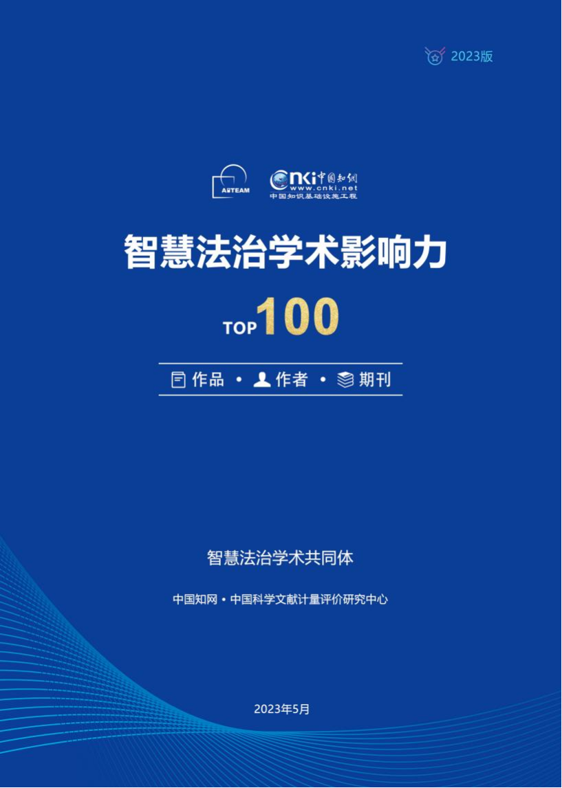 据悉,智慧法治学术影响力TOP 100榜单由“智慧法治学术共同体”(AITEAM)和中国知网•中国科学文献计量评价研究中心合作,依托中国知网数据资源,对智慧法治研究领域学术影响力处于前列的作品、作者、期刊进行遴选与宣介,旨在鼓励优秀学术成果创作、发现人才、促进学术成果传播和学科繁荣发展。自2021年以来,已连续评选出3届《智慧法治学术影响力TOP 100榜单(作品•作者•期刊)》。