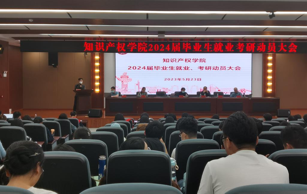 5月23日下午,知识产权学院2024届毕业生就业、考研动员大会在法学楼学术报告厅举行,知识产权学院院长肖冬梅、书记田良富,法学院党委副书记黎益君等出席,参加动员大会的还有2024届毕业班的班主任老师、受邀作经验分享的2023届毕业生代表以及全体2024届毕业生。会议由田良富主持。
