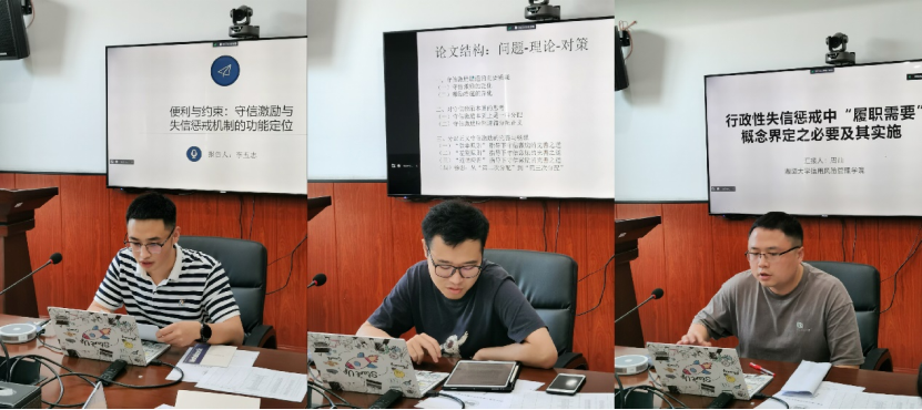 分议题一的评议环节中,华东政法大学博士研究生王者也表示,他对于陈颖同学汇报中涉及的行政组织法控制的内容很感兴趣,认为我国的行政组织法与英美以及日本等国相比较为薄弱,并提出可借鉴英国模式,从传统的行政行为中心主义转向行政组织中心主义,以更好地实现依法行政目标。我校硕士研究生申江华指出,要注意区分社会性失信约束与市场性失信惩戒的目的,并在此基础上根据社会性失信惩戒涉及的主体、调整范围等确定社会性失信约束的类型化。我院蒋都都老师针对刘佳昕同学的报告,提出从市场监管的角度建设商务诚信的建议,行政部门可以在一定范围内以维持市场秩序为目的,加强对于商务失信主体的惩戒。