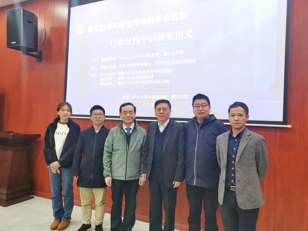 2023年4月25日上午9点,我院于法学楼东附一楼会议室举办韶风名家论坛,中国人民大学法学院教授杨建顺应邀作为主讲人,为我院师生开展了“行政过程中的诚实信义”专题讲座。讲座由新葡萄8883官网AMG部长、信用风险管理学院院长顾敏康教授主持,与会嘉宾有:信用风险管理学院副院长肖伟志教授、谭达宗副教授、蒋都都老师。
