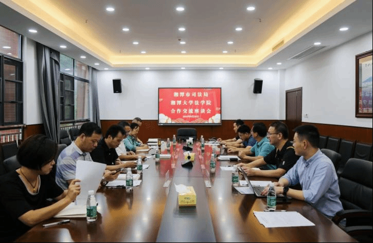校党委副书记廖永安对湘潭市司法局一行表示诚挚欢迎。他简要介绍了湘大法学学科的发展历程和学科特色,特别是湘大在调解、公证、非洲法、地方立法等领域开展的理论创新和人才培养探索,并希望进一步加强双方在人才培养培训、理论课题研究、举办学术论坛等方面的合作。