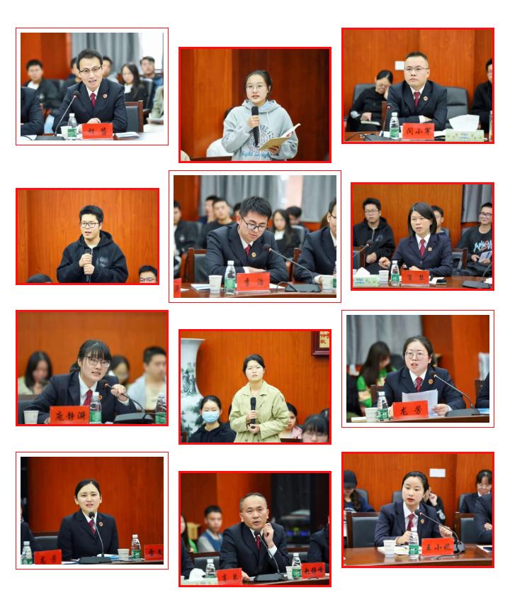 市县两级院主宣人分别从工作内容、工作环境以及工作氛围等方面多角度向同学们宣传和推介湘潭检察。在现场互动环节,同学们纷纷踊跃举手提问,现场气氛热烈。从如何成为一名检察官到检察官需要什么样的品质等等,交流的问题所涉范围广,针对性强,在很大程度上帮助同学们解答了对于检察官这一职业的了解,坚定了同学们投身检察事业的信心。