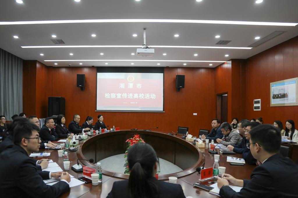 活动伊始,欧爱民首先对湘潭市检察系统宣讲团队的到来表示热烈欢迎,对此次活动的举办表达高度认同。他指出,检察宣传进校园活动,能够帮助我校法科学生更加了解检察官这一职业的职责和使命,同时,校检合作能更好地和高校法学教育形成良性互动,为社会培养更多的法治人才。