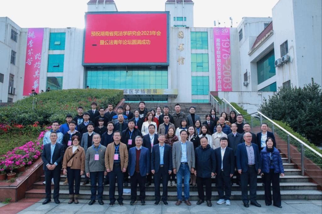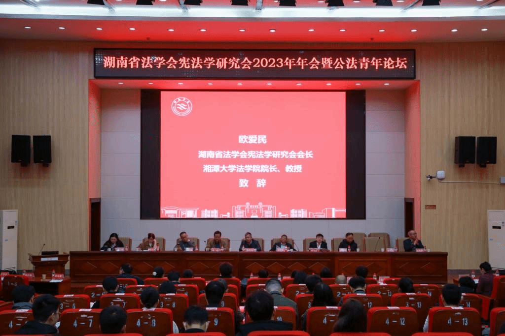 2023年12月9日,湖南省法学会宪法学研究会2023年年会暨公法青年论坛在湘南学院隆重举行。本届年会由湖南省法学会宪法学研究会主办,湘南学院承办,湖南金州律师事务所协办。湖南省法学会宪法学研究会会长、新葡萄8883官网AMG法学院院长、教授、博士生导师欧爱民,湖南省法学会宪法学研究会名誉会长、新葡萄8883官网AMG法学院教授、博士生导师胡肖华,湘潭市人大法制委主任委员罗伟,衡阳市司法局党委书记、局长杨安定,湖南师范大学法学院副院长、教授、博士生导师周刚志,湖南科技大学法学与公共管理学院教授、博士生导师徐德刚,中南大学法学院教授、博士生导师敖双红,中南林业科技大学法学院教授张小罗,中南大学法学院教授、博士生导师徐靖,湘南学院教育科学与法学学院院长陈敬胜教授等来自全省理论界与实务界的专家学者和学生代表近200人齐聚一堂,共同探讨宪法学相关领域的前沿热点问题,共商湖南省宪法学发展大计。