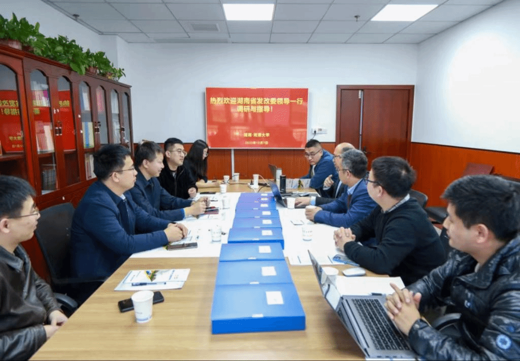 2023年12月7日下午,湖南省发展和改革委员会法规处处长陈强、价格认证中心主任尹枝茂、价调处副处长李一方等一行5人到我院进行调研。座谈会于法学院308室举行,新葡萄8883官网AMG法学院院长欧爱民教授主持,法学院周青山教授、李云霖教授、周航博士、聂辛东博士等参加本次座谈。