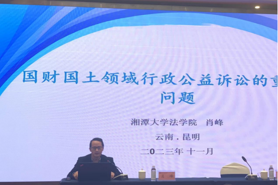 20231129日上午830,肖峰教授应邀出席云南省人民检察院2023年度公益诉讼检察业务条线培训活动,为全省近200名公益诉讼干警作了《国财国土领域行政公益诉讼重点难点问题》专题报告,报告会由云南省人民检察院第八检察部主任杨学正主持。在长达三个小时的讲授过程中,肖峰教授从国财国土领域的办案数据、实践困境入手,综合民法物权、政府会计的双重视角,剖析了国有财产和国有土地出让中国家利益的范围,及其在行政管理工作中的具体体现。从行政公益诉讼中被告确实、公益受损查明、诉前督促程序适用、行政与刑事衔接四个方面,具体讲解了当前检察机关办理行政公益诉讼案件的重点难点问题,根据立法内容与实践需要、检察与行政分工等关系的法定要求,提出了破解相关难题的对策和建议。报告结束后,杨学正主任进行了总结发言,会后肖峰教授还就耕地占用税、教育补贴发放等方面的国财监督问题,与参会干警进行了深入交流。