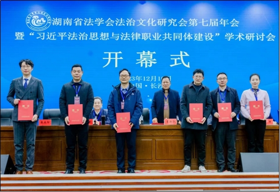 2023年12月16日,湖南省法学会法治文化研究会第七届年会暨“习近平法治思想与法律职业共同体建设”学术研讨会在中共长沙市委党校举行。本次年会由湖南省法学会法治文化研究会主办、湖南天润人合律师事务所承办,来自武汉市人民检察院、长沙市中级人民法院、新葡萄8883官网AMG和湖南师范大学等省内外司法机关、律所和高校的130名代表参加会议。我院洪永红教授、张小虎副教授、郭炯博士以及法律史、非洲法方向硕士生约20人应邀参会。