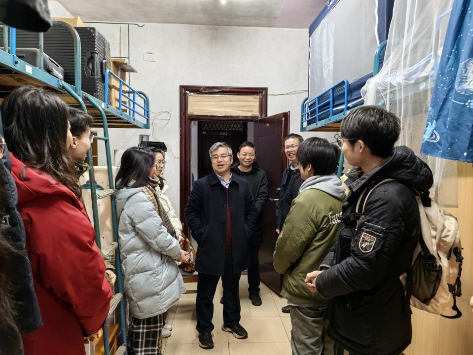 走访过程中,学部领导与留校学生进行了亲切交流,详细了解同学们寒假期间在校学习生活情况,提醒同学们在校期间要珍惜时间好好学习,要充分注意自身健康与安全,严格遵守学校管理规定。李仕春部长勉励同学们潜心科研,努力培养扎实学识,追逐科研之梦,唱好青春之歌;陈双喜书记希望同学们科学规划假期生活,注重劳逸结合,保持良好心态,不断提升自我,祝同学们新春快乐、学业有成;欧爱民院长希望大家能继续发扬湘大法科的奋斗精神,勤勉学习,努力奋进,利用假期为自己“充电”,在新的一年里争取再创佳绩;黎益君副书记提醒同学们时刻要把安全放在首要位置,同时关注天气变化,及时添衣保暖,保持联络畅通,遇到问题及时联系老师。