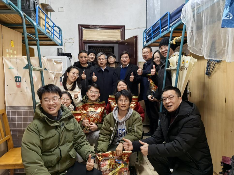 李仕春部长一行还为留校的每一位同学送来了新春祝福和新年大礼包。同学们纷纷表达了对学部关爱的感恩,2021级博士生曹城说:“感谢学部领导老师们的关心,我们一定努力学习,勤勉科研,高素质成才,不辜负学部领导老师们的教诲和期望。”在场同学们纷纷表示一定会牢记嘱托,按照学校假期留校管理要求,提高安全意识,充分利用假期不断充实自我,提升自我。
