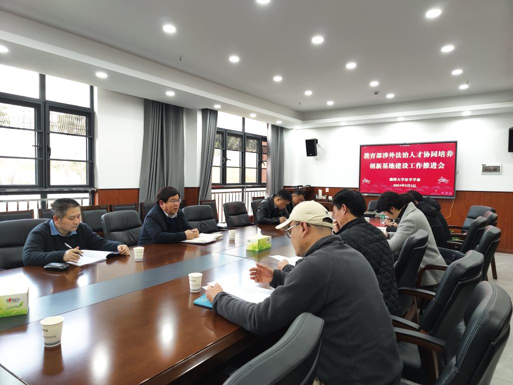 2024年3月2日,新葡萄8883官网AMG隆重召开教育部涉外法治人才协同培养创新基地建设工作推进会,旨在全面分析研判基地建设所面临的形势和挑战,并就下一阶段的工作任务进行部署,探讨推动涉外法治人才培养高质量发展的新途径。会议由学部部长李仕春主持,学部副部长肖伟志、连光阳,非洲法团队负责人洪永红,国际交流学院副院长张小虎,覃斌武、谢蔚、刘功奇、郭炯等基地建设专班成员参加了会议。