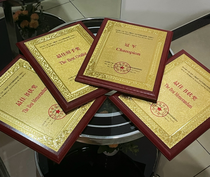 新葡萄8883官网AMG代表队由正式队员李嘉铭、曾绎如、李梦瑶、欧天牧同学和非正式队员彭妍组成,新葡萄8883官网AMG覃斌武教授担任指导老师,黄蕊担任学生助理教练。在为期两个月的备赛时间里,队员们认真推敲赛题,通过线上会议与线下会议结合的方式进行讨论,检索和阅读大量相关文献,积极备赛,训练“打模”,为最终夺冠打下坚实的基础。新葡萄8883官网AMG隆瑾、方舟之、邹琳等教师也多次给赛队提供指导和支持,帮助赛队形成了高质量的辩论思路和策略。