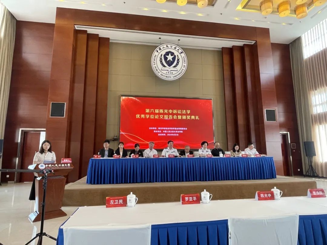 2024年6月2日,第六届陈光中诉讼法学优秀学位论文报告会暨颁奖典礼在中国人民公安大学木樨地校区隆重举行。本次活动由陈光中诉讼法学奖学基金管理委员会主办、中国人民公安大学承办,来自全国各地高校的38名与会专家和54名与会获奖者参与了本次会议。出席颁奖典礼的嘉宾有:中国政法大学原校长、终身教授陈光中先生,管理委员会主任、中国政法大学诉讼法学研究院卞建林教授,中国人民公安大学校长曹诗权教授,中国人民公安大学副校长罗亚平教授,四川大学法学院院长左卫民教授,中南财经政法大学姚莉教授,中国政法大学诉讼法学研究院院长熊秋红教授、中国政法大学教务处处长汪海燕教授,浙江大学法学院院长胡铭教授,中国人民公安大学法学院院长李玉华教授,海南大学法学院院长王琦教授等。新葡萄8883官网AMG部长李仕春教授受湖南警察学院院长廖永安教授的委托参加会议,表达了对陈光中教授的崇高敬意和对获奖同学的热烈祝贺,并作为点评专家对现场发言人的论文进行点评。