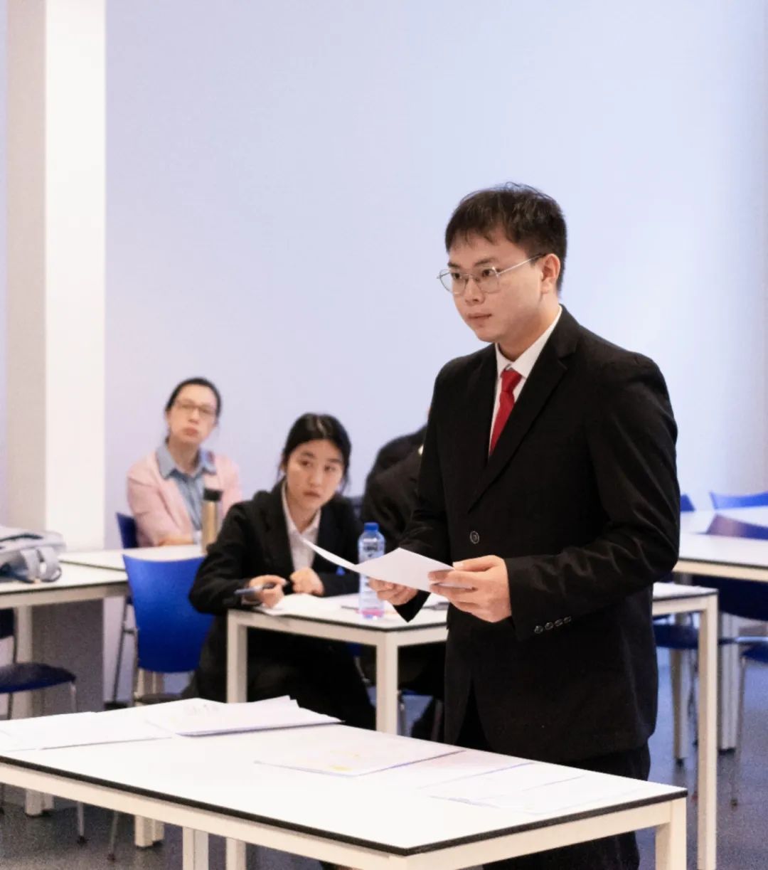 荷兰海牙当地时间2024年7月17日,四分之一决赛和半决赛在莱顿大学海牙校区举行。在上午的四分之一决赛中,每支赛队代表辩方律师、检方律师、政府方律师之一进行一轮庭辩。新葡萄8883官网AMG代表队朱锑、杨婧婕担任检方律师角色,与苏州大学、上海财经大学经过陈述与反驳两个环节精彩和激烈的交锋,成功晋级半决赛。