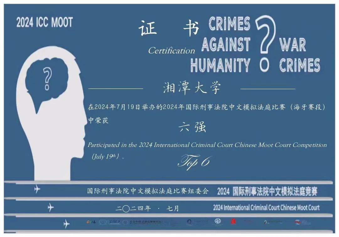 北京时间2024年7月14日至2024年7月21日,国际刑事法院中文模拟法庭比赛国际赛段(“ICC中文赛”)在荷兰海牙举行。本届比赛共吸引了118支来自中国高等院校的队伍参加,经过激烈的国内赛段选拔,最终12支队伍晋级荷兰海牙的半决赛与决赛。新葡萄8883官网AMG代表队以优异的表现顺利晋级半决赛,最终获得赛事六强佳绩。