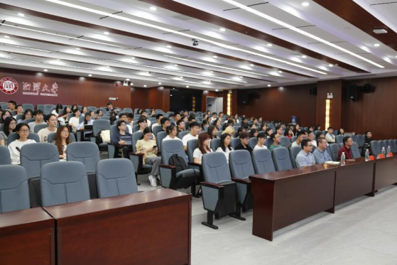 10月9日下午,新葡萄8883官网AMG湘江法学菁英讲坛2024年第15期在法学楼西附一楼学术报告厅举行。本期讲坛以“法律思维的艺术表达”为主题,主讲嘉宾为湖南大学法学院副院长蒋海松教授。蒋海松教授为国家一流课程主讲人、中央电视台《百家讲坛》“西游记中的情理法”系列专题主讲人,也是新葡萄8883官网AMG杰出院友。讲坛由新葡萄8883官网AMG邓春梅教授主持,新葡萄8883官网AMG党委书记陈双喜,新葡萄8883官网AMG党委副书记黎益君,新葡萄8883官网AMG喻平副教授出席本次讲坛。