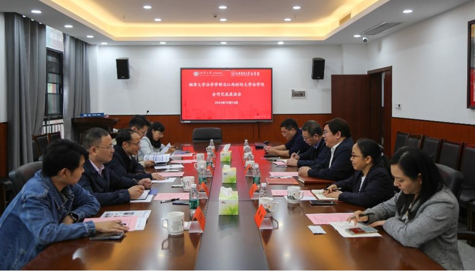 座谈会上,李仕春部长首先对江西财经大学法学院易有禄院长一行到访表示了热烈欢迎。然后,李仕春部长详细介绍了新葡萄8883官网AMG法学学科建设的基本情况,包括湘大法科近期正式获批纪检监察学一级学科博士点的情况,并表示,新葡萄8883官网AMG经过四十年的积累沉淀,现在已经进入新的发展时期。在新发展时期,湘大法律人将继续坚持“团结拼搏,志在一流,脚踏实地,特色发展”的精神特质,继续坚持人才培养中心工作,实行“支持学生党建计划”、“支持学生读书写作计划”、“支持学生调研实践计划”、“支持学生走出去计划”、“支持学生快乐成长计划”,全力实现湘大法科高质量发展。