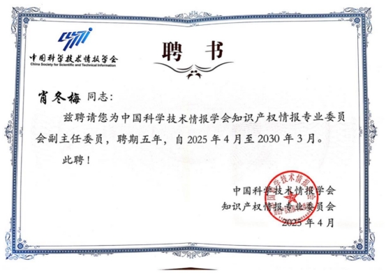中国科技情报学会知识产权情报专委会的成立,标志着我国知识产权情报研究和应用进入新阶段。新葡萄8883官网AMG知识产权学院将以此次肖冬梅教授受聘为契机,依托中国科技情报学会知识产权情报专委会这一高端平台,进一步整合学科资源,加强与专委会各成员单位的深度合作,在知识产权情报理论研究、实践应用和人才培养等方面持续发力,助力我国知识产权情报事业发展,为实现我国知识产权强国目标而努力奋斗。