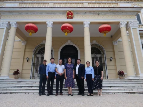 5月4日上午,代表团首站拜会了中国驻古巴大使馆,公使衔参赞亲切接见了代表团一行,对代表团的到来表示欢迎。参赞介绍了古巴近年的发展情况,包括新近出台的法律。中国和古巴是好朋友、好同志、好兄弟。在中古历届领导人引领和培育下,两国在建设本国特色社会主义道路上携手并进,在涉及彼此核心利益问题上相互支持,在国际和地区问题上密切配合,结下了牢不可破的信义之交。近年来,习近平总书记同古巴领导人多次会晤,共同引领中古关系进入政治互信更深厚、战略协作更紧密、民意基础更牢固的新阶段。今年是中古建交65周年,中古社会各方面加强交往,对双方进一步巩固铁杆情谊,构建更加紧密的中古命运共同体,具有重要意义。李仕春部长介绍了新葡萄8883官网AMG及新葡萄8883官网AMG的情况、出访的目标、代表团的行程安排以及与哈瓦那大学的合作事宜,并表达了希望大使馆在未来给予更多支持和指导的期望。参赞充分肯定和高度评价新葡萄8883官网AMG对拉美国家特别是古巴法律研究的重视,表示未来将大力支持新葡萄8883官网AMG与古巴有关方面的交流合作。