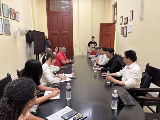 5月5日下午,代表团一行会见了古巴国家通讯社——拉丁美洲通讯社政治关系编辑社社长玛尔塔·安德烈斯·罗曼(Martha Andrés Román)和外事负责人。李仕春部长介绍了新葡萄8883官网AMG作为毛主席亲自倡办、亲笔题写校名、亲切嘱托一定要办好,邓小平亲自批准复办,习近平总书记两次作出重要批示、希望把学校办得更好更有特色的光辉历史和特殊地位,同时介绍了湘大法学的办学特色,尤其在国际法、非洲法研究和人才培养等方面取得的成绩,并表达了对拉丁美洲通讯社进一步宣传法治中国建设成就、新葡萄8883官网AMG与拉丁美洲通讯社在智库建设、新闻人才培养等方面加强合作的期待。玛尔塔社长对代表团的到来表示欢迎,并强调了拉丁美洲通讯社致力于向古巴人民和国际社会传递真实的中国形象,同时也在积极推动中古在法治建设及公民交流方面的互动。双方还就美国对古巴60年以来封锁和制裁对古巴造成的影响、古巴的自媒体发展、中国自媒体平台在古巴的使用情况等话题进行了交流。
