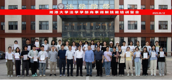 结业典礼结束后,廖永安校长、李仕春部长等领导应邀参与本次培训合影活动。廖永安校长对同学们顺利完成本次调解培训并取得培训证书表示祝贺,李仕春部长对萧老师和江法官的支持表示感谢,并希望今后与萧老师、江法官加强交流合作,有更多机会邀请两位老师前来指导授课。