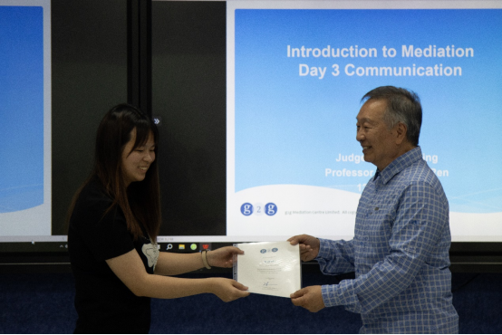 此次培训课程由萧教授与江法官以双师同堂的方式,共同讲授。萧教授采用全英文授课,向同学们重点介绍了调解的基本原理、谈判的主要方法以及沟通交流的技巧。江法官对调解程序、调解技巧以及调解员操守等内容进行了专业细致的讲授。培训课程以调解技能提升为核心,通过案例演练、小组展示演练等方式,有效加强了同学们对调解技术的掌握,提高了同学们调解实战能力。