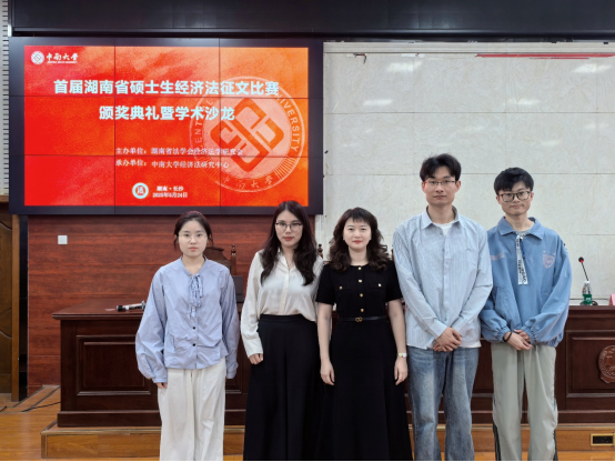 2025年5月24日上午,首届湖南省硕士生经济法征文比赛颁奖典礼及学术沙龙在中南大学麓南校区文法楼221报告厅举行。本次会议由湖南省法学会经济法学研究会主办,中南大学经济法研究中心承办。著名法学家、省法学会原副会长漆多俊出席会议并讲话。省法学会罗良方副秘书长,中南大学法学院党委书记李华东研究员,省法学会经济法研究会名誉会长郑鹏程教授,副会长张德峰教授,中南大学法学院教授李国华等专家学者出席会议。新葡萄8883官网AMG硕士研究生王海龙、胡梓晴等应邀参会作论文汇报分享,陈灿祁教授应邀作为与会嘉宾对获奖作者论文进行评议。