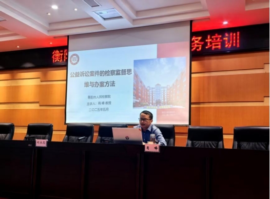 5月28日,衡阳市人民检察院举办2025年度全市公益诉讼检察业务培训班,培训会由衡阳市人民检察院专职委员刘永忠主持,全市公益诉讼条线共50余名干警参加培训。肖峰教授应邀讲授了《公益诉讼案件的检察监督思维与办案方法》课程,肖峰教授围绕私人行为模式、行政监管模式、检察监督模式之间的关系问题,运用生态环境、食品药品、国有财产与国有土地出让、安全生产等领域的规则和案件为素材,详细讲解了同一事实选择行政、民事公益诉讼监督的方法,行政案件中分阶段、分环节监督,民事案件中参照适用侵权责任归责原则、惩罚性赔偿、连带责任,刑事程序与公益诉讼程序面临的附带起诉、双向衔接等问题,向全体学员进行了长达三个半小时的讲授。