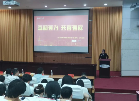 王奕菲同学作为24级英语类班主任助理组长则担任本次英语类助理组的汇报人。她以“互助有为,共育有成”为主题,全面展示了在过去一年中,英语助理组依托学部平台,在新生的英语学习习惯培养、个性化帮扶方案制定、创新化辅导赋能等方面帮助新生筑牢英语基础,实现四级通过率达97.5%,600分以上人数增幅高达88.8%。