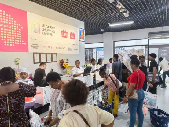 8月2日,新葡萄8883官网AMG坦桑尼亚研学团实地探访EACLC时观察到,首批开业的120余家商铺已陆续投入运营。其中家电、日用小商品区客流量最为密集,平均单店日接待顾客超400人次,收银台区域人头攒动。值得注意的是,约85%在售商品为中国制造,包括海信电视、海尔家电等。