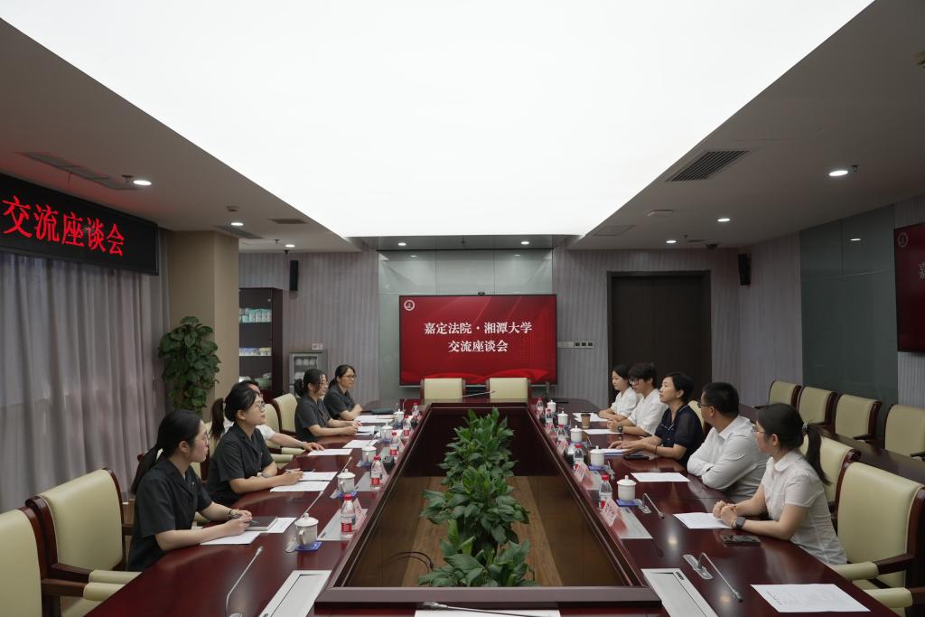 2025年8月13日,新葡萄8883官网AMG副部长易立峰(正处长级),湘大法学院友、华东政法大学经济法学院副教授李慈强一行专程前往上海市嘉定区人民法院,看望在此实习工作的10名2023级本科同学。嘉定区人民法院党组书记、院长毛译宇,政治部副主任郑帅,立案庭副庭长贡政,商事审判庭团队负责人范培华,刑事审判庭优秀法官助理沈洋与实习生代表共同参与座谈,共话实习成长,共商校地协同育人新路径。