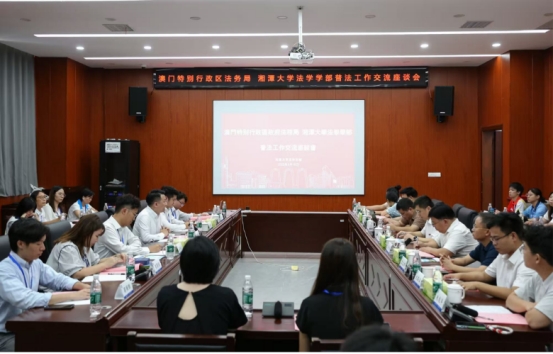 8月19日,澳门特别行政区政府法务局法律推广及公共关系厅厅长陈志扬率领“普法义工交流团”团员共36人到访我校,着重围绕普法工作展开深入交流。“普法义工交流团”包括澳门法律交流协进会、澳门法学协进会、澳门青年法学会、妇女普法义工团、社区普法义工团、工联普法义工团、普法动力义工团的成员。澳门法律交流协进会会长黄景禧、澳门法学协进会理事罗卓彦、澳门青年法学会代表潘彦良,我校党委委员、副校长刘金刚,新葡萄8883官网AMG部长李仕春、副部长连光阳、党委副书记黎益君,立法研究中心主任李云霖教授,新葡萄8883官网AMG国内合作办主任邹琳教授,刘欣琦副教授,学部团委书记史崧正,新葡萄8883官网AMG法律诊所所长朱能丰参与了此次活动。