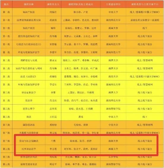 近日,教育部网站发布了《关于第三批国家级一流本科课程认定结果的公示》。教育部组织网络评审和会议评审,拟认定5999门课程为第三批国家级一流本科课程。湖南拟新增6门国家级一流法学课程,其中新葡萄8883官网AMG拟新增2门国家级一流法学课程,分别是: