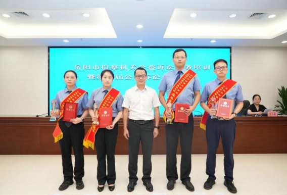 2025年7月7日至11日,岳阳市人民检察院举办公益诉讼检察业务培训班暨第一届岳阳市公益诉讼检察业务竞赛。7月7日下午,肖峰教授应邀为培训班作《检察公益诉讼中可诉性要素的理解和适用》专题讲座,培训会由市人民检察院第七检察部主任万佳妮主持。肖峰教授全面分析了最高检关于高质效办案工作文件关于可诉性要素的具体内容,结合社区团购、非税收划转等热点问题,为全体学员阐释了理解和适用可诉性标准的关键问题和有效措施。7月10日至11日,肖峰教授应邀担任了检察业务竞赛的评委工作,全程听取了参赛选手的案例汇报、业务答辩和法庭辩论情况,并在赛后进行了专业点评和为获奖同志颁奖。