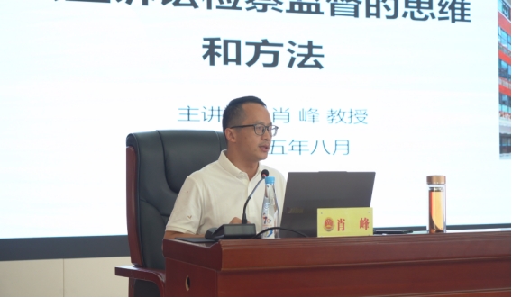 2025年7月8日至11日,郴州市人民检察院举办全市公益诉讼检察业务培训暨第一届业务竞赛活动。7月8日下午,肖峰教授应邀为培训班全体学员作《公益诉讼检察权的理解与实施》专题讲座,培训会由郴州市人民检察院副检察长邹军华主持。肖峰教授立足于检察权与公共利益的关联关系,深入剖析了在同一事实中理清检察行政与民事公益诉权关系的要点,并以矿产资源、食品安全领域的办案重点难点问题为例,讲解了检察行政、民事公益诉讼工作中如何把握可诉性监督对象的工作方法。