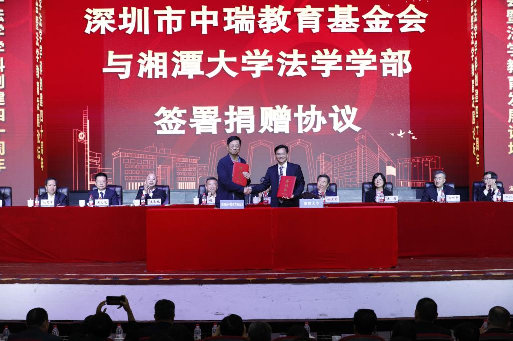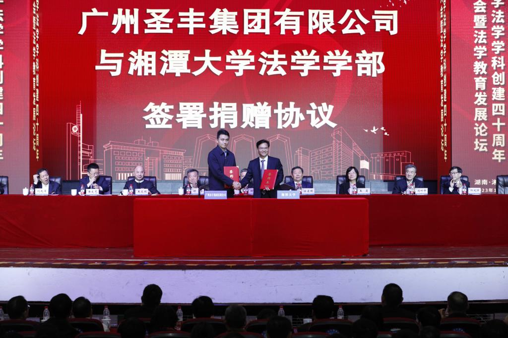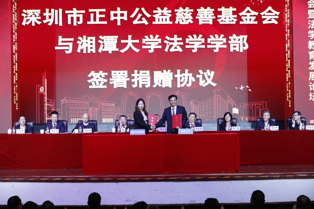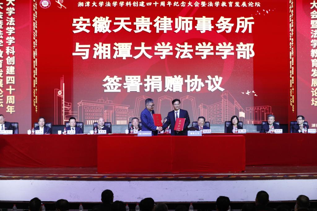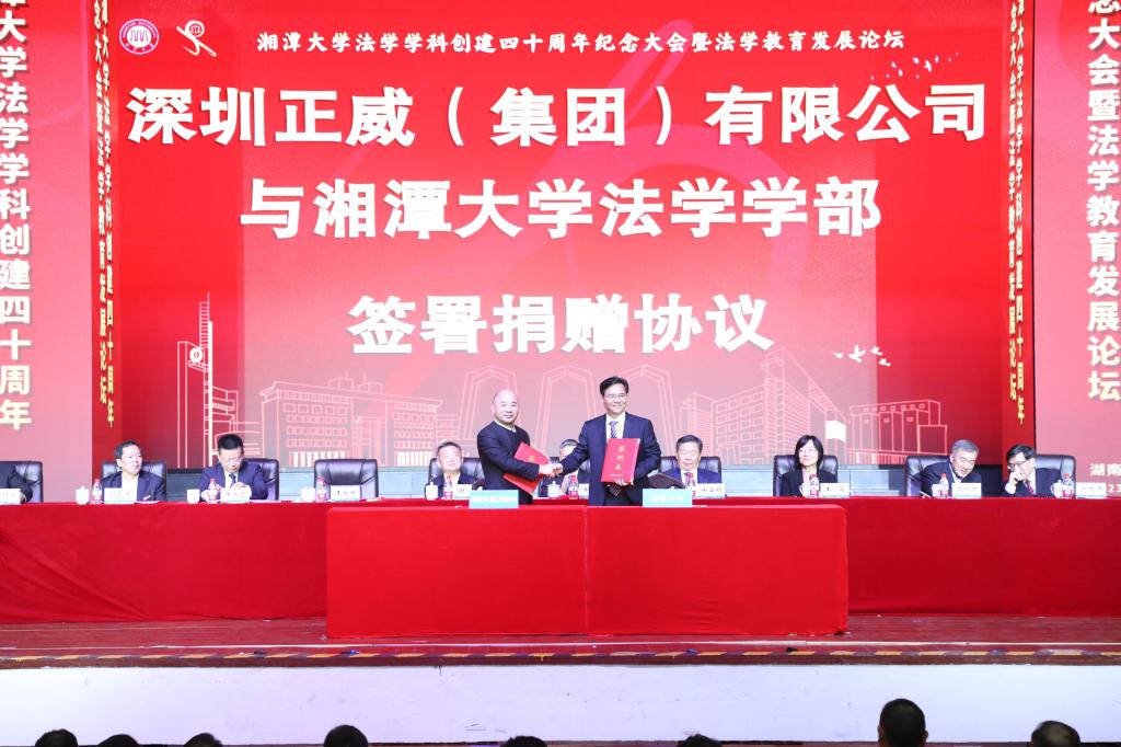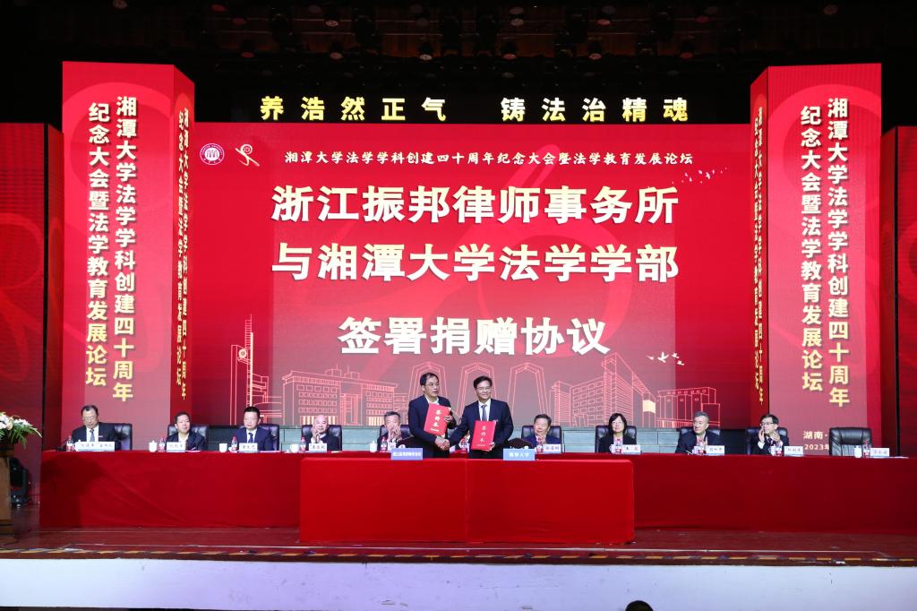 捐赠企业家代表王文银说,新葡萄8883官网AMG是在中国红色文化摇篮中成长起来的教育殿堂,是中国特色社会主义现代化建设的重要力量,肩负着培养高质量人才的重任,肩负着赓续革命传统、弘扬革命精神的光荣使命。法学学科作为湘大的王牌学科之一,被称为引领湖南法学教育的中流砥柱。他用“厚望”“守望”“希望”三个词语表达了对新葡萄8883官网AMG法学学科的祝福与期待。