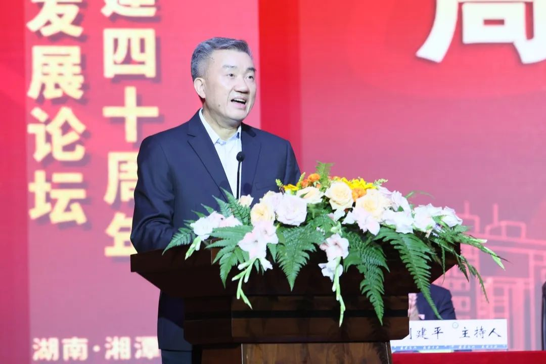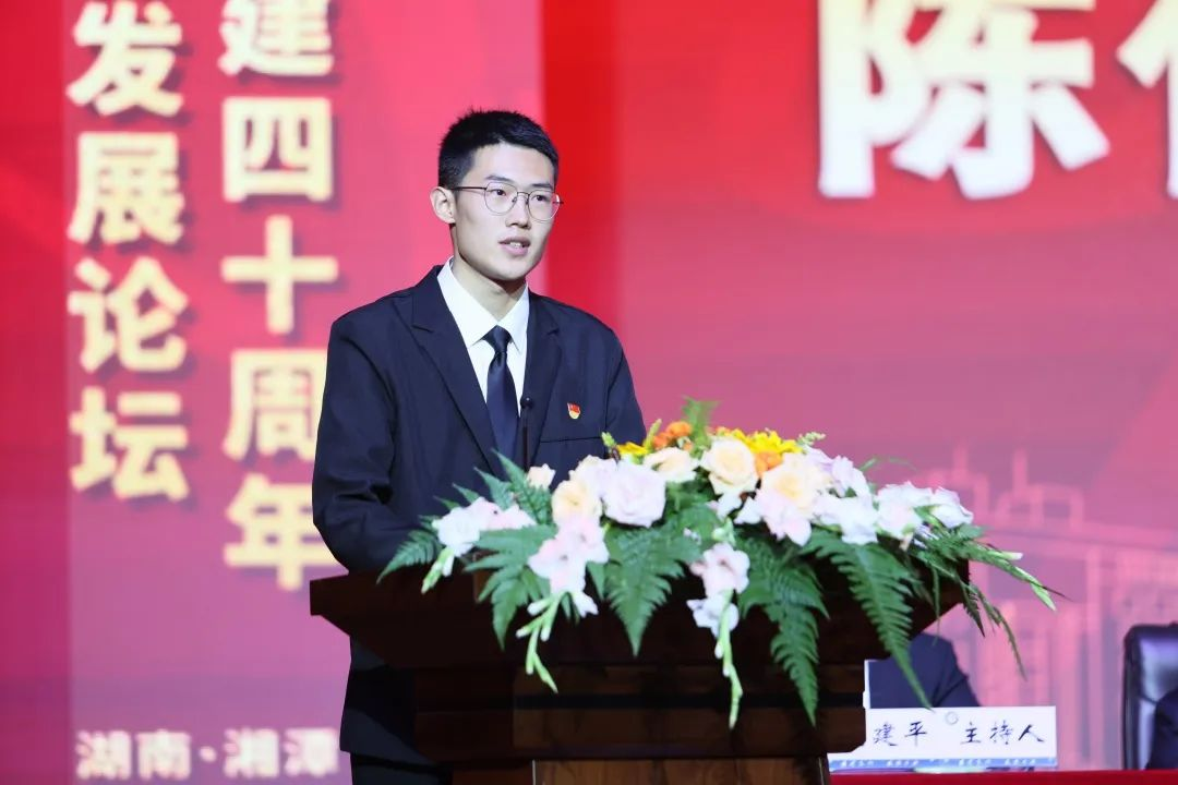 校友代表邱利军用“荣耀、骄傲、感恩、希望、祝福”等词语向湘大法科40年献上最诚挚的祝福。邱利军说,湘大法学“养浩然正气,铸法治精魂”的院训,激励着一代又一代湘大法学学子,深深扎根祖国大地,吸取不竭的养分,向阳而生,追光前行,终成秀木。