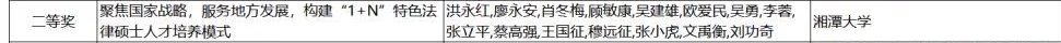 据悉,在本次全国评审中,共有284项成果获得奖项,其中特等奖成果1项,一等奖成果35项,二等奖成果248项,就学科分布而言,全国法学学科仅有1项获得一等奖,8项获得二等奖。本次获奖是湘大法科继2005年、2014年获得国家级教学成果奖后,第三次再获该殊荣,是湘大法律人践行“为党育人、为国育才”使命,薪火相传、久久为功的集中体现。