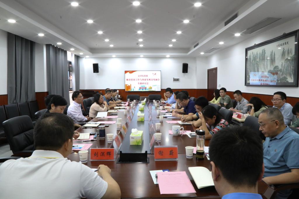 9月23日下午,法学院党委推进党建工作与事业发展深度融合专题研讨会在法学楼204会议室召开。校党委副书记廖永安教授出席会议。校党委组织部副部长胡阳、数学与计算科学学院党委书记张普、公共管理学院党委书记易臣何、知识产权学院直属党支部书记田良富、信用风险管理学院直属党支部书记易立峰应邀参加会议。法学院党委、知识产权学院直属党支部、信用风险管理学院直属党支部班子成员,以及法学院教工党支部支委成员参加会议。会议由法学院党委书记陈双喜主持。