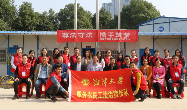 2017年10月26日上午,新葡萄8883官网AMG法律诊所配合湘潭市总工会、新葡萄8883官网AMG法学院·知识产权学院在湖南省第三工程有限公司东方名苑项目部成功举办了2017年“尊法守法·携手筑梦”服务农民工法制宣传活动启动仪式暨首场宣讲会;同时顺利完成了农民工权益保护的首次社会调研。出席此次法治宣传活动的有省教育工会主席高新民,新葡萄8883官网AMG工会主席戴飞军,湘潭市总工会党组成员、副主席彭东贵,湘潭市住房和城乡建设局党委副书记、副局长戴建辉,湖南省第三工程有限公司湘潭分公司经理曹建辉,新葡萄8883官网AMG法学院党委书记黄德华、新葡萄8883官网AMG法学院副院长欧爱民。