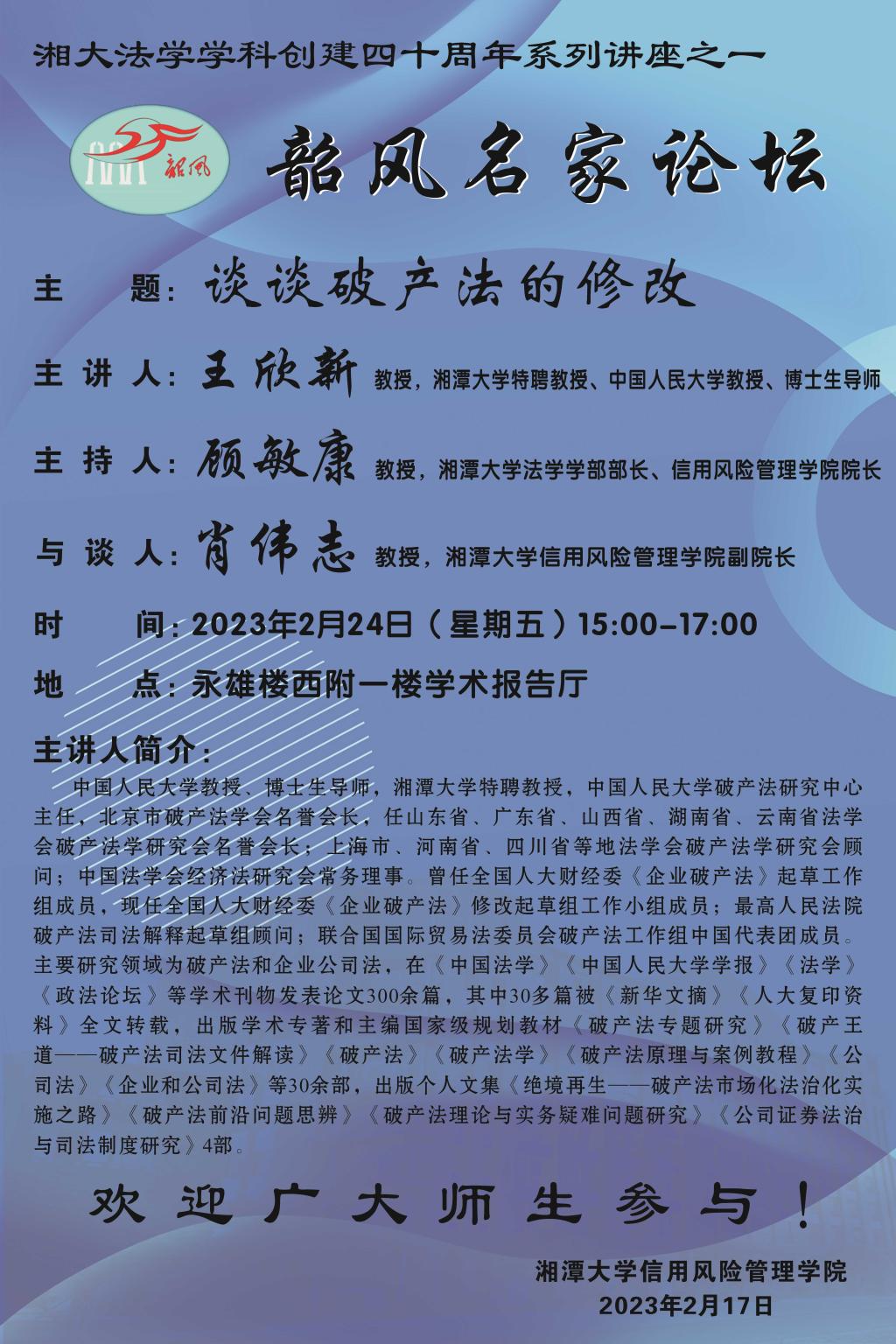 【湘大法学学科创建四十周年系列讲座之一】王欣新:谈谈破产法的修改