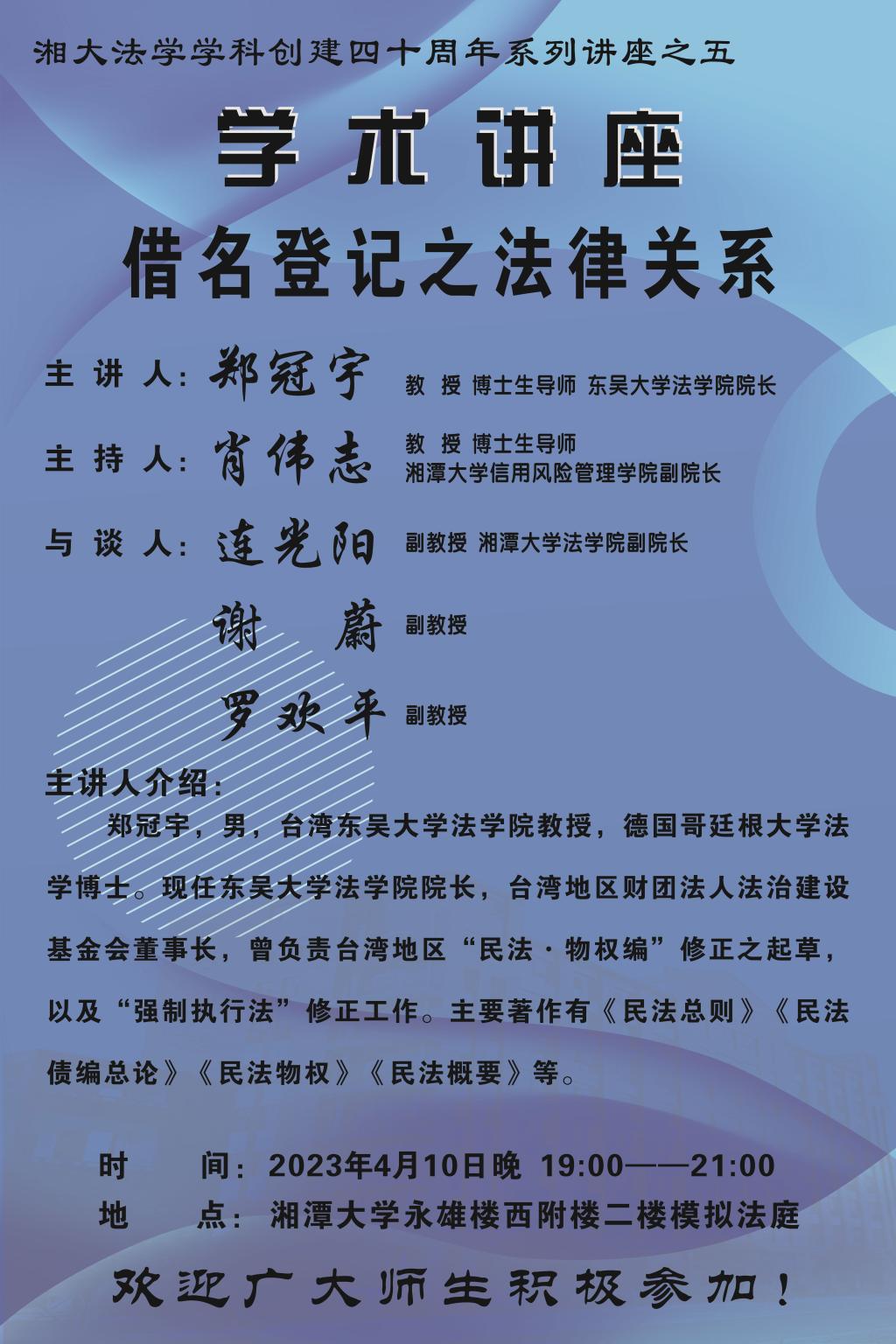 【湘大法学学科创建四十周年系列讲座之五】郑冠宇:借名登记之法律关系