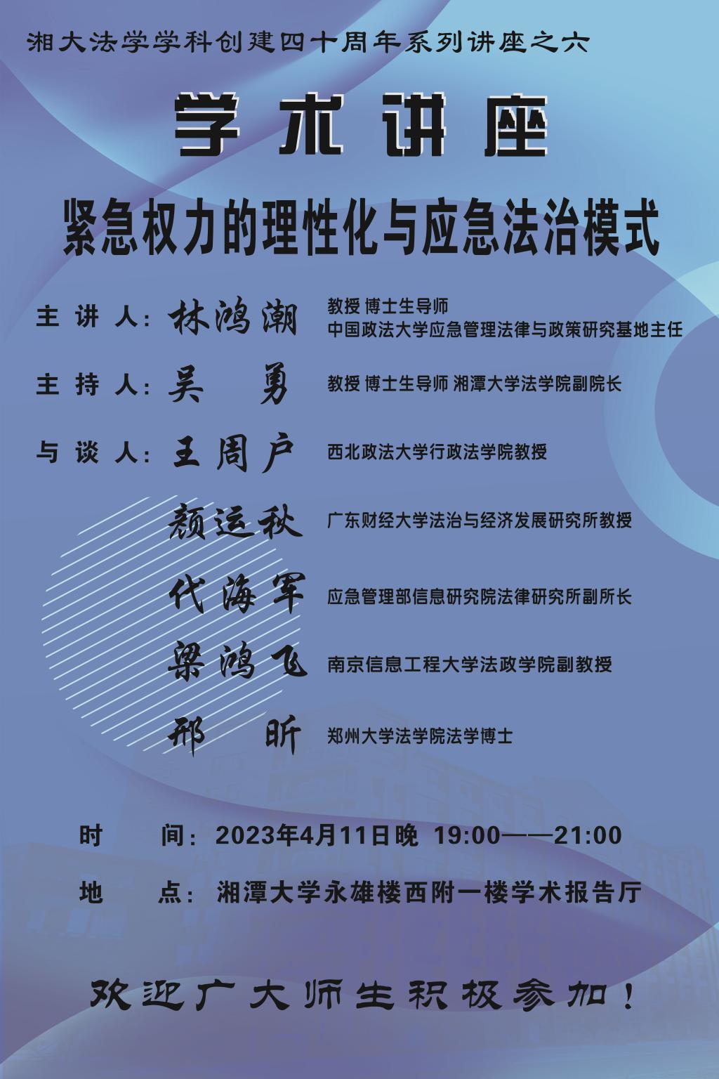 【湘大法学学科创建四十周年系列讲座之六】林鸿潮:紧急权力的理性化与应急法治模式