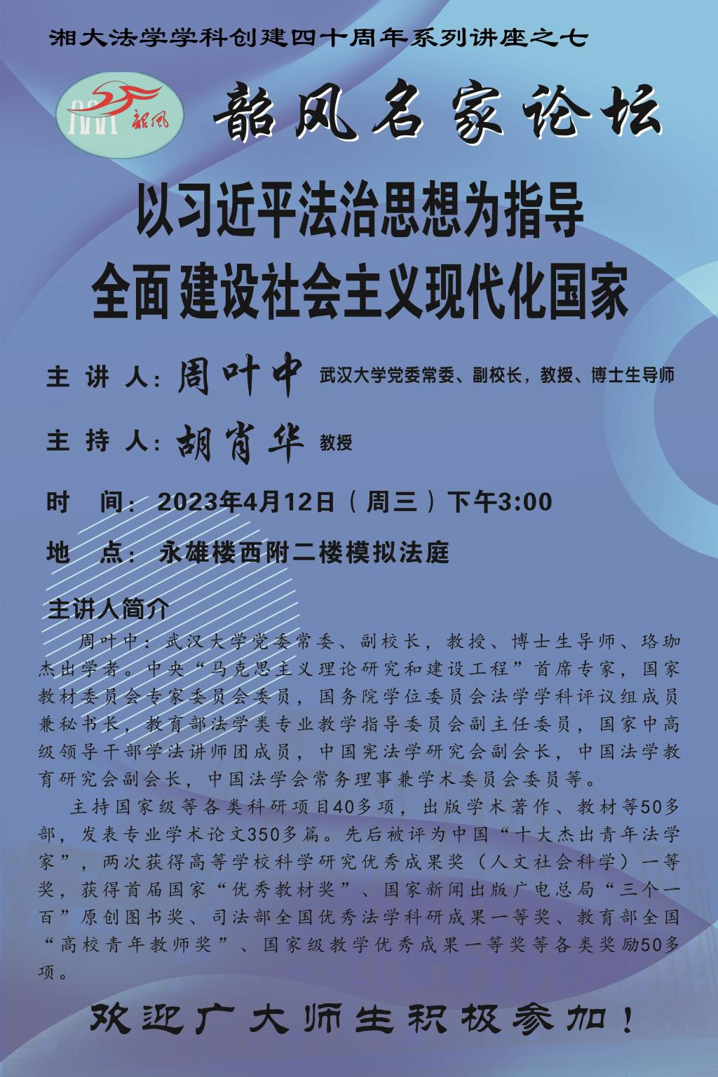 【湘大法学学科创建四十周年系列讲座之七】周叶中:以习近平法治思想为指导全面建设社会主义现代化国家