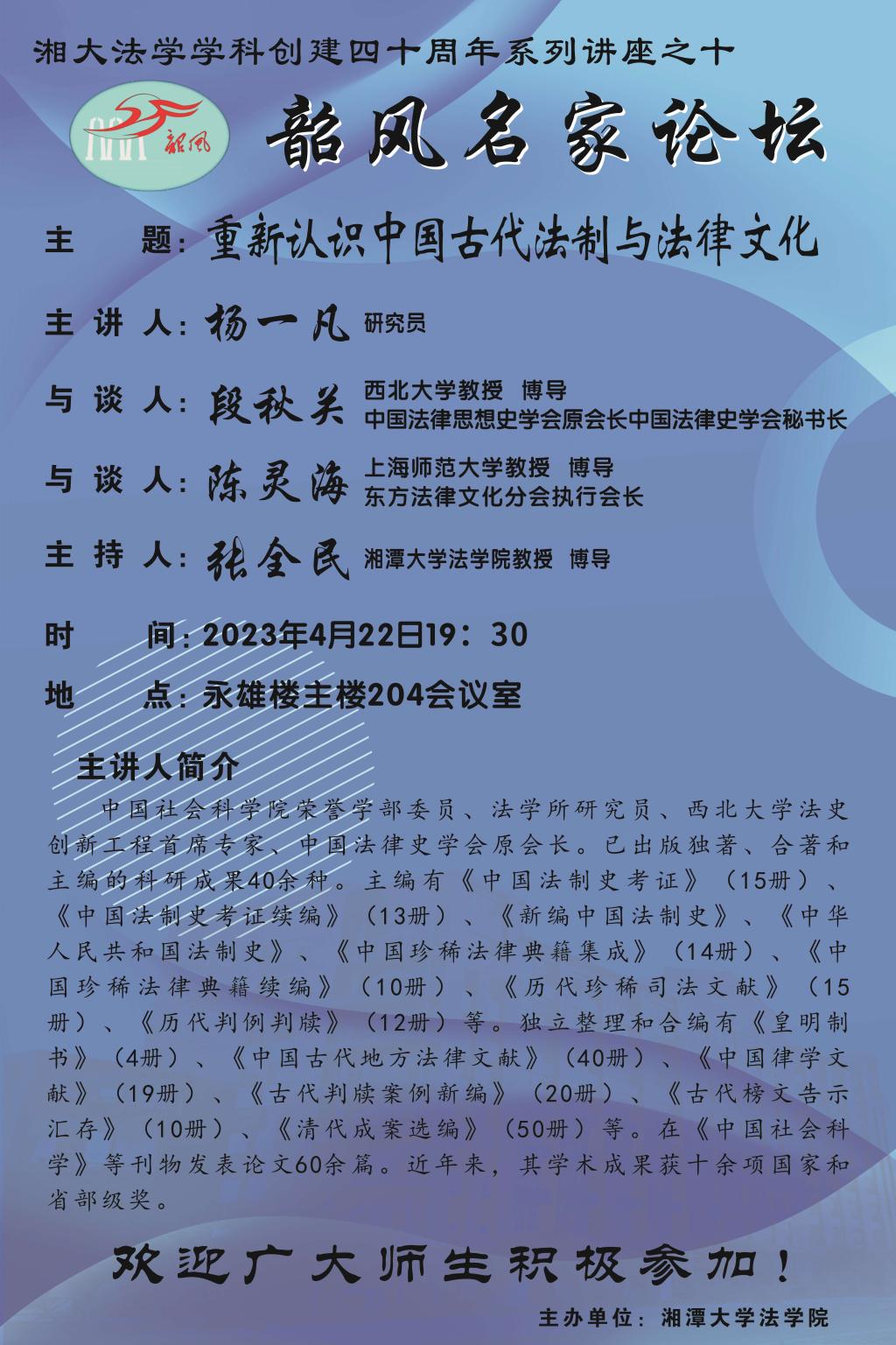 【湘大法学学科创建四十周年系列讲座之十】杨一凡:重新认识中国古代法制与法律文化