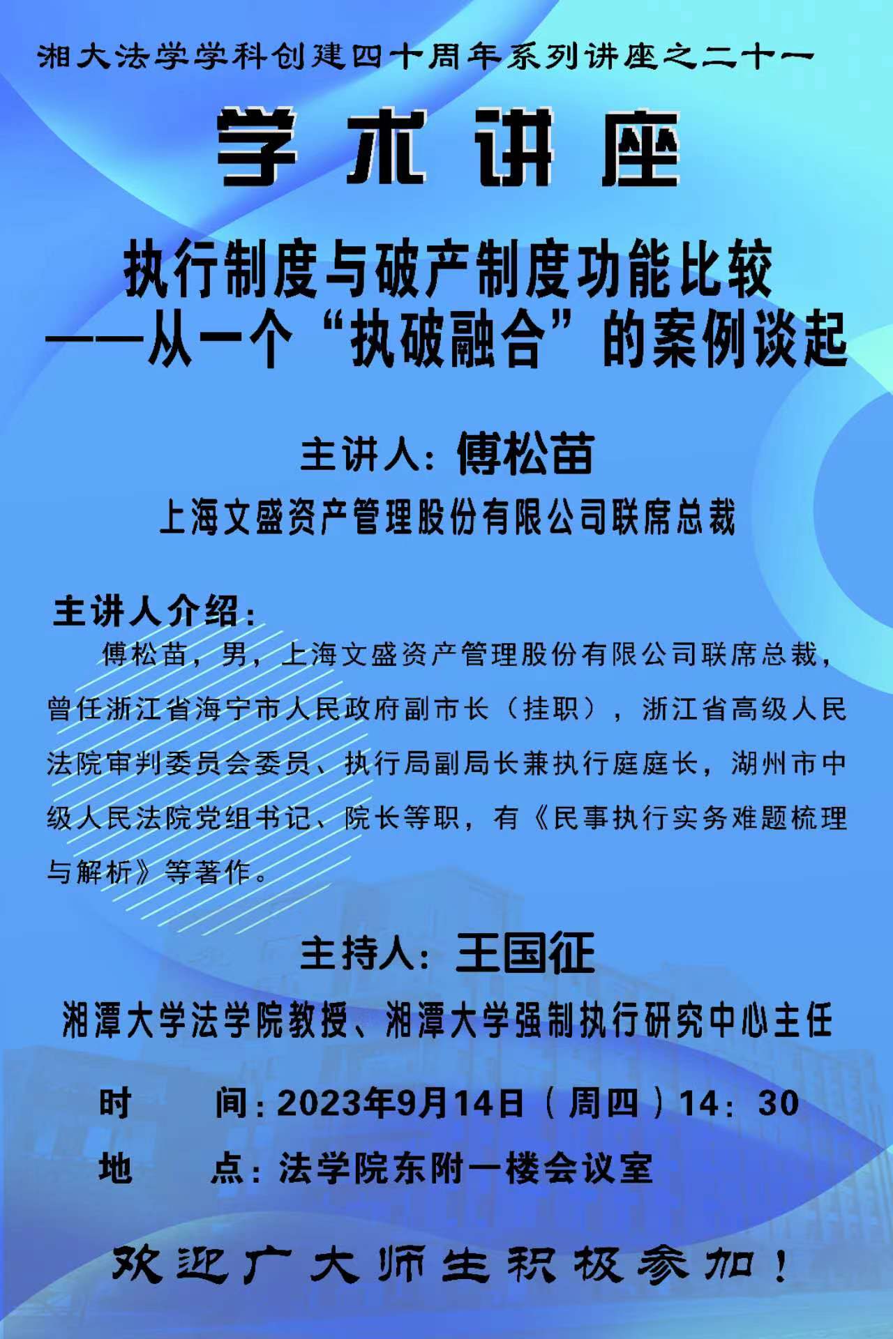 【湘大法学学科创建四十周年系列讲座之二十一】 傅松苗:执行制度与破产制度功能比较——从一个“执破融合”的案例谈起