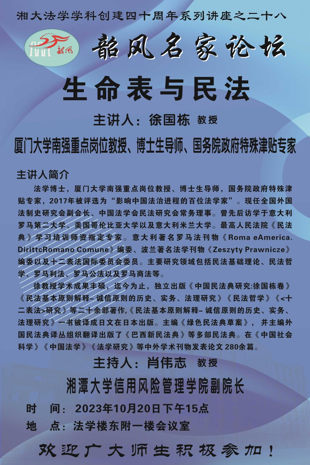 【湘大法学学科创建四十周年系列讲座之二十八】徐国栋:生命表与民法