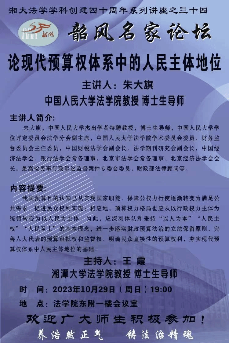 【湘大法学学科创建四十周年系列讲座之三十四】朱大旗:论现代预算权体系中的人民主体地位