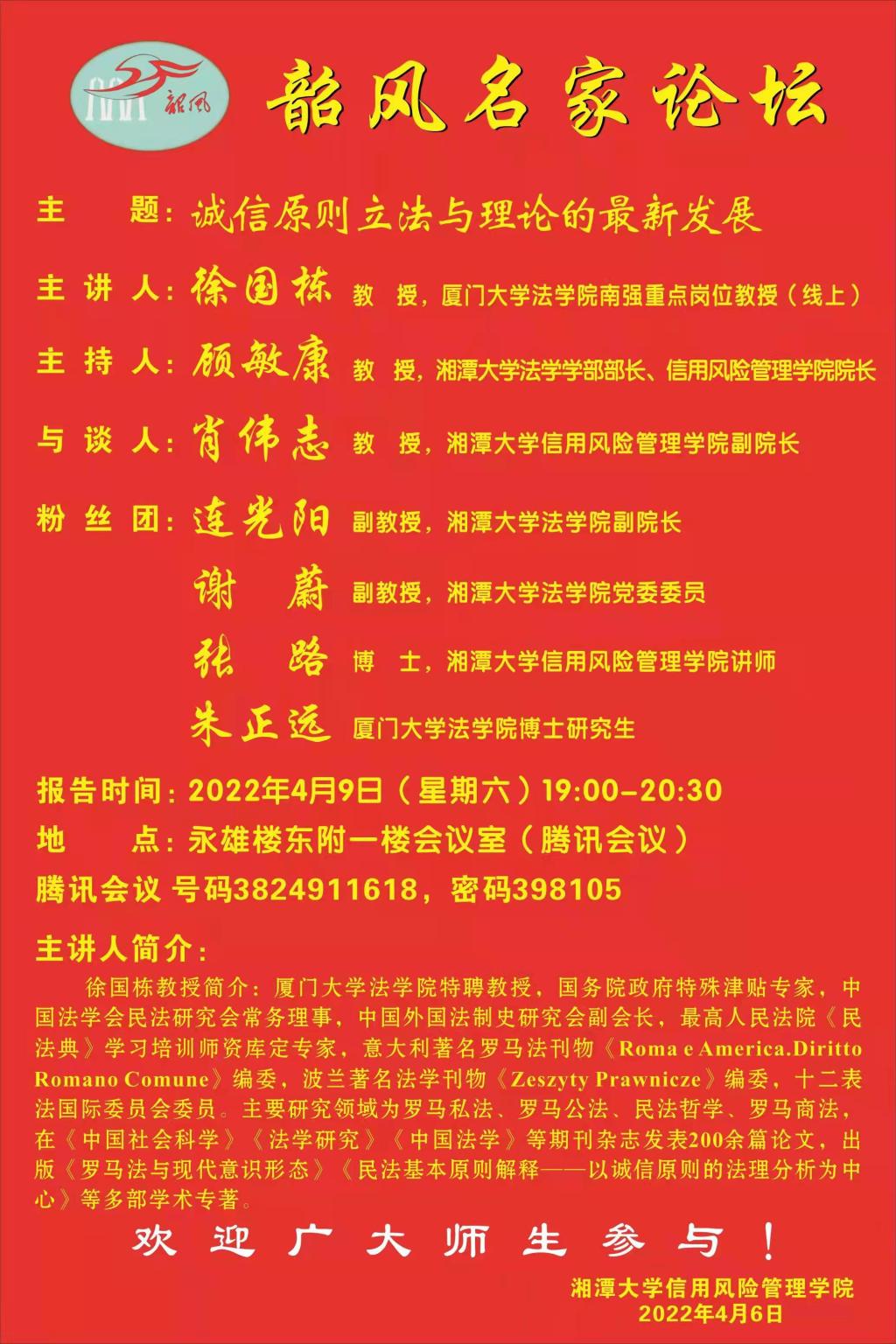 【韶风名家论坛】徐国栋:诚信原则立法与理论的最新发展